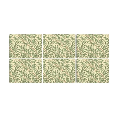Morris & Co Set of Six Willow Bough Green Placemats is designed to bring sophistication and a touch of class to your dining tableEach placemat measures 30.5cm x 23cm and has a cork back.To maintain these lovely placemats, simply wipe clean with a damp cloth.Co-ordinating coasters available separately, subject to stock.