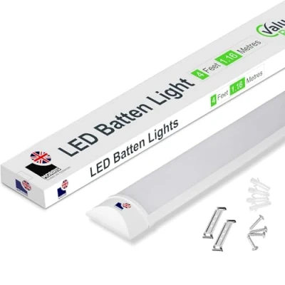 BUDGET FRIENDLY: The Morris Eco LED Batten Light is engineered for optimal energy efficiency and impressive cost savings. Delivering 120 lumens per watt, it guarantees that your office space or living area is consistently bathed in ample light. SIMPLE SETUP: Bid farewell to complex tube lights. This professional ceiling lamp includes mounting brackets, allowing for an effortless installation on both walls and ceilings. There's no need for a starter or driver, just connect it straight to the power supply. MULTIFUNCTIONAL: These LED strip lights, with their capability to serve as excellent lighting options for your office, kitchen, or even your garage, provide a wide range of lighting possibilities. GREEN CHOICE: This office ceiling light, boasting an impressive 120 lumens per watt and a solid IP20 rating, does more than just brighten your workspace. It's also a smart choice for long-term energy savings, significantly reducing your energy expenses over time. CUTTING-EDGE TECHNOLOGY: This batten light, equipped with top-notch LED technology, significantly reduces energy usage while still delivering brilliantly bright and pleasing illumination – an ideal choice for enhancing work efficiency.