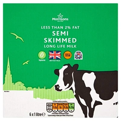 Extra long life Suitable for Vegetarian Semi skimmed long life milk Free from Lactose Less than 2 percent Fat