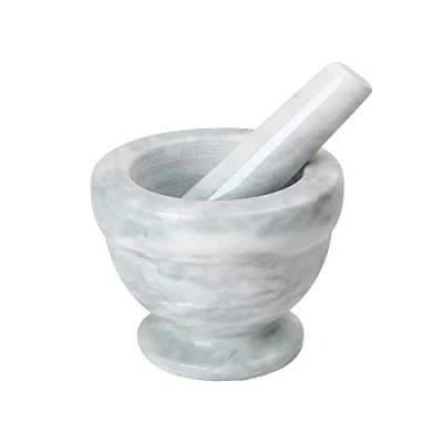 Mortar and Pestle Set Bowl Polished Natural Marble Stone Spices Grinder Pill Crusher (White)