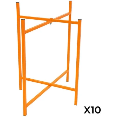 ManoManoGeneral description Built for convenience, these mortar board stands are an essential tool for professional bricklayers, block layers, and plasterers. Designed to hold a mortar board securely at an ideal working height, they keep mortar within easy reach, improving workflow and reducing physical strain throughout the day. Whether you’re building walls or skimming plaster, these sturdy stands help maintain a cleaner, more efficient workspace. Crafted from premium 25mm x 25mm square box section steel, these stands deliver outstanding durability and stability on any construction site. Their vibrant orange powder-coated finish adds visibility and style while providing excellent resistance to everyday wear. Each set includes ten stands, providing flexible coverage across your working area and ensuring you always have support exactly where it’s needed. Technical specifications Colour: Orange Total Weight: 54kg Weight Per Stand: 5.4kg Material: Powder Coated Steel Height: 750mm / 75cm /