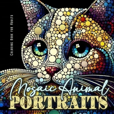 Mosaic Animal Portraits Coloring Book for Adults: Abstract Portrait Adults Animals Dog Cats grayscale Pets