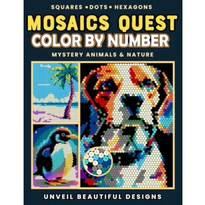 Mosaics Quest Color By Number: Mystery Animals & Nature: Pixel Art Coloring Book for Stress Relief Unveil Beautiful Mosaic Designs with Squares, ... Relaxing Activity Adults Teens