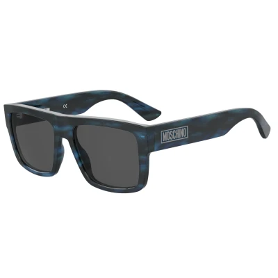 Sunglasses Moschino Mos187/S, With square frame in acetate, they are the perfect accessory for those who love a decisive style. The blue color and gray lenses give a modern look. Recommended for round and oval faces, since they add definition and structure to the features. Ideal for Man.