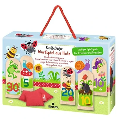 Children's game ✓ The rules of the wooden game are quickly explained: Whoever knocks over the toy figures most skillfully with the 3 throwing bags scores the most points and wins Indoor and outdoor fun. The skill game is most fun in the garden and in nature, but can also be played indoors in bad weather Practical carrying box ✓ Thanks to the high-quality wooden transport box, the game can be easily taken with you on trips, to the campsite, on holiday or simply to friends Child-friendly design: the cute crawling beetle motifs on the wooden figures will immediately delight the kids and thanks to the high-quality, smooth wood, injuries can be avoided Creative gift idea: Whether for a children's birthday, Easter, Christmas or simply as a souvenir - the crawling beetle throwing game is a perfect gift idea for all crawling beetle and nature lovers, Manufacturer: moses. Verlag GmbH