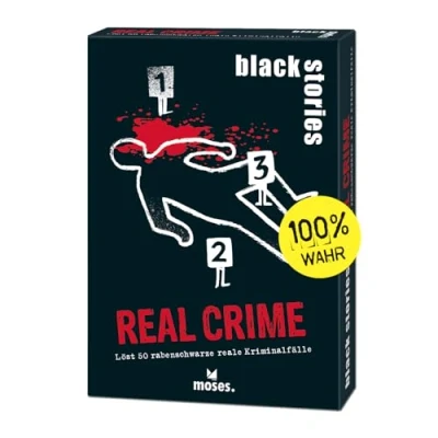 moses. Black Stories Real Crime 50 Puzzles about Cases, Card Game with Variant and Score Chips, Puzzle for Teenagers Adults