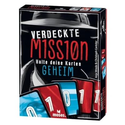 Clever agent game ✓ With this exciting card game, players become secret agents and have to outsmart the players in clever moves with the right tactics or skilful bluffing Extraordinary concept: Each secret agent creates his personal display with 0 and 1 cards, partly open, partly covered. Who first reveals three 1 cards more than all the others wins - or can the hidden cards of the fellow players change the outcome? Compact travel game ✓ Thanks to the compact packaging and easy-to-follow rules, the interactive strategy game offers hours of fun on the go Entertaining board game ✓ With the unique game concept and tactical depth, the fun party game is ideal for heating up the mood and getting a game evening going Creative gift idea: Whether for a birthday, Christmas, Easter or simply as a souvenir game for family evenings - the family game is the ideal gift for tactical foxes and agent fans, Manufacturer: moses. Verlag GmbH