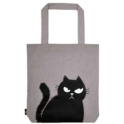 Functional companion: practical shopper in grey in trendy cat design with grumpy ED motif for all cat lovers and Ed, the Cat fans High-quality print ✓ On the front with Ed, the Cat's grummy face print - the back is decorated with the lettering "THIS IS MY HAPPY FACE!" Good wearing comfort ✓ Thanks to the long, wide fabric handles, the bag sits comfortably on the shoulder and can withstand a lot of things even on longer shopping days Versatile accessory: sustainable and reusable fabric bag, made from 100% cotton with stand base for extra space for shopping, office days, university or shopping marathon Optimal care: hand wash recommended for long-term use and preservation of shape and colour. Dimensions: 39 cm x 42 cm