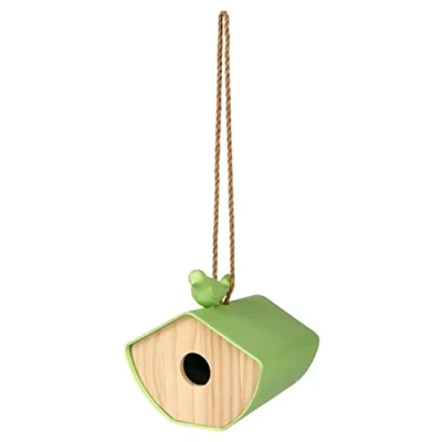 moses. Leaf & Flower Bird House, Small House for Hanging on the Balcony, Patio or in Garden, Made of Wood and Bamboo, Green