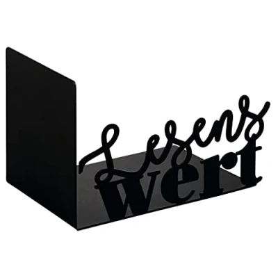 Reading love for the shelf. You cannot offer more appreciation to your favourite treasure: the high-quality moses. libri_x bookend is a real eye-catcher on the home bookshelf Elegant and modern ✓ The bookend made of black metal with punched lettering "Reading Worth" together with your favourite books forms a wonderfully decorative home accessory. So your favourite books come into their own Functional and durable: The bookends are sturdy and thanks to the material made of metal, very durable. It ensures a secure hold of the books on the shelf, so that it looks much tidier when none of your beloved books can slip and tip over Great gift idea: in the beautiful gift box, the bookend with front motif is the ideal gift for a birthday or housewarming for book lovers and viellesers Optimal dimensions ✓ Dimensions of a bookend approx. 14.2 cm x 9 cm x 9 cm, dimensions of the packaging approx. 15 cm x 10 cm x 10 cm