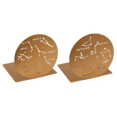 moses. libri_x Bookend Zodiac Sign Set of 2, Decorative Metal Book Stand in Gold, Golden Bookends with Cut Out Look