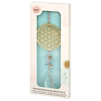 A feel-good atmosphere for home ✓ The crystal glass suncatcher, decorated with golden details and various crystals, attracts light and solar energy Great lighting effects ✓ Hang the wind chime near the window and it will reflect the sunlight coming into the room beautifully Mood enhancer ✓ The reflected light creates a very special atmosphere in the room - the perfect decoration for cozy days on the couch, for yoga practice in the living room or meditation Hanging decoration ✓ The sun catcher is 29 cm long in total and makes a good hanging decorative element on the window, balcony or terrace - it sparkles beautifully into the room on sunny days Great gift ✓ In the beautifully designed gift box, the suncatcher is a wonderful gift, for decorating your new home, as a decoration for yoga or while meditating