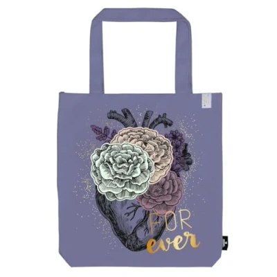 moses. Shopper Forever in purple, Romantasy Tote Bag Made of 100% Cotton, Large Book New Adult Design, Anatomical Heart, standard size, Retro
