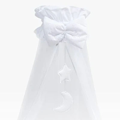 Mosquito Netting Canopy Drape Only Fits Crib, Moses Basket Broderie Anglaise (Moon White)