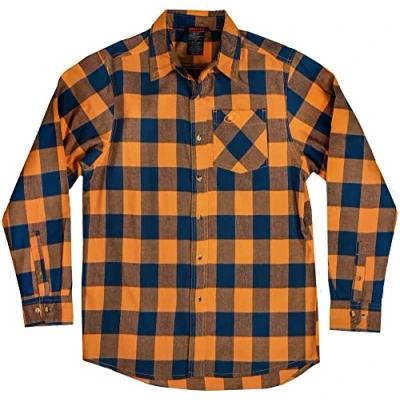 Mossy Oak Men's Plaid Flannel Shirt Dress, Orange Buffalo Shells, L