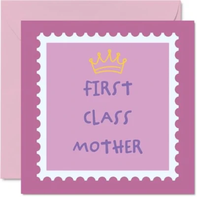 MAKE YOUR MOTHER SMILE WITH THIS UNIQUE BIRTHDAY CARD: This exceptional quality Mother birthday card for her shows the design 'First Class Mother'. If you are looking for a beautiful birthday card Mother for her, then then this happy birthday Mother card is bound to make her smile. Not just a birthday card for Mother this could also be a birthday gifts for Mother, Mum or Mummy. WHAT DO YOU GET: The card is printed on one side and BLANK ON THE INSIDE to allow you to write your very own message. The unique fun design is printed on a specially sourced and environmentally responsible board. At 360 microns thick the natural white one-sided gloss board has a quality look and feel. Supplied with a coloured gummed envelope to complement the design and ready to be sealed and sent in the post. Great Mother Mothers Day cards, birthday cards Mother, Mum birthday card. NO INK SMUDGES: There is nothing worse than writing inside a card to find that the shiny surface makes the ink smudge. This is why we use a high quality one sided coated board. The uncoated side will absorb more of the ink from your pen to make smudging a thing of the past. Mother birthday cards, Mother birthday cards from Son. SIZES: Greeting Card = 145mm x 145mm, Envelope = 155mm x 155mm, Card Thickness = 360 micron. Happy birthday Mother, Mothers birthday card, Mother cards birthday, birthday card Mother, happy birthday Mother card, Mother gifts from Son. MADE AND QUALITY CHECKED IN THE UK: We print and manufacture all our products right here in the UK so you can be sure of a fast turnaround and a product that is expertly made. Using environmentally responsible premium board our card is conscious of the responsible management of the world's forests - happy birthday card Mother, Mother birthday cards.
