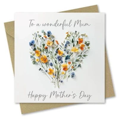MOTHERS DAY CARDS FOR MUM - 150x150mm when folded. Card supplied folded and individually wrapped with envelope. MADE IN THE UK – Designed, printed and packed in the UK, our cards are made from board which is manufactured in Europe. Cards have "Happy Mother's Day" message on inside. POSTAGE - Each card and envelope weight 22g. Size: 155x155x3mm (UK Postage - Letter) PREMIUM QUALITY THICK CARD – 365 Microns sturdy card with luxury feel. Supplied with premium quality envelopes. COMPOSTABLE BAG - Supplied in protective Biodegradable and Compostable clear bag. Made with minimum 80% renewable bio-based content.