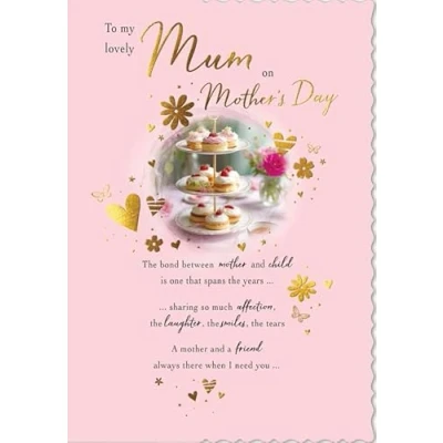 A High Quality Greeting Card and Envelope From Piccadilly Greetings Designed and made in the UK - supporting British jobs Caption: Mum Description: Cake stand Approximate size: 9 x 6 inches