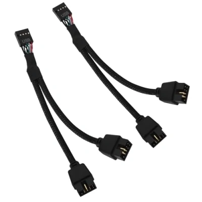 This adapter can convert the USB2.0 9PIN on the motherboard into two 9PIN ports. Used to solve your lack of USB ports. A durable braided nylon jacket, tinned copper braid, high-quality aluminum foil and 24 AWG tinned copper wire combine to create a cable that can withstand frequent plugging and unplugging and ensures a long service life. The 9PIN to double PIN extension cable is suitable for all computer motherboards and is very suitable for extended connections. Suitable for NZXT water cooling, LED lights, graphics card monitors, air cooling and other USB control board connections. Using a shielded USB cable can effectively remove, suppress or isolate interference and improve the stability and reliability of USB signal transmission. USB splitter cable 1 to 2 for connecting additional devices. Easy to install, the total length of the cable is approx. 16 cm, flexible and tensile, plug and play.