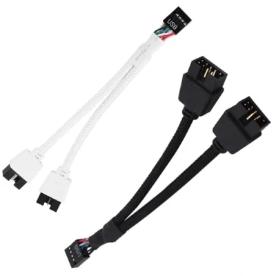 Motherboard USB 2.0 9pin Header 1 to 2 Extension Hub Splitter Adapter, PCS 9 Pin Splitter, Cable 2, Computer (Black and White)