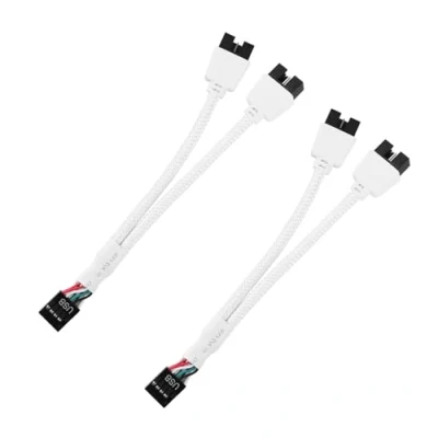 This adapter can convert the USB2.0 9PIN on the motherboard into two 9PIN ports. Used to solve your lack of USB ports. A durable braided nylon jacket, tinned copper braid, high-quality aluminum foil and 24 AWG tinned copper wire combine to create a cable that can withstand frequent plugging and unplugging and ensures a long service life. The 9PIN to double PIN extension cable is suitable for all computer motherboards and is very suitable for extended connections. Suitable for NZXT water cooling, LED lights, graphics card monitors, air cooling and other USB control board connections. Using a shielded USB cable can effectively remove, suppress or isolate interference and improve the stability and reliability of USB signal transmission. USB splitter cable 1 to 2 for connecting additional devices. Easy to install, the total length of the cable is approx. 16 cm, flexible and tensile, plug and play.