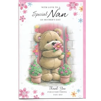 Mothers Day Card for Nan 23 x 15 Cm (9 6 inches) with Love to a Special on Mother's Cute Teddy Flower Thank You Everything Do