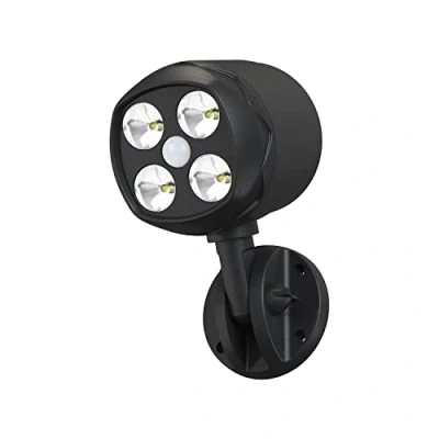 【Ultra-bright LED lights】4 high-power LED 3W white light, 600 lumen 6000k outdoor motion sensor light. The excellent light intensity is suitable for dark place, such as stairs, storage room,garage,courtyard. 【PIR Sensor Motion Detection】In darkness or at night, the motion sensor lights automatically light up when detect motion within 16 feet (5m). After 30 seconds of no motion detected, the light will automatically turn off. 【Multi-Angle Adjustment】Our outdoor security light head can be rotated 360°, the light base can be swung back and forth 180°, you can freely adjust the angle according to your needs. 【Waterproof and Durable】IP65 waterproof, the material is rust-proof and durable ABS plastic. It provides you with perfect lighting outdoors in rain and snow. 【Battery Powered & Easy Installation】The battery operated outdoor lights powered by 4 D-cell batteries (not included), and the base is fixed to the wall with the included 4 mounting screws.
