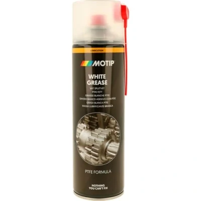 General description MoTip Pro White Grease Spray is a high-quality grease designed for lubricating mechanical parts made of metal or plastic. It offers excellent adhesion and high viscosity, helping to prevent wear, sticking, and corrosion. This grease is resistant to environmental influences, weak acids, and bases, making it suitable for various applications including hinges, springs, shock absorbers, and stabilizing rubbers. Technical specifications Type: Grease with PTFE Viscosity: High Stability: Excellent mechanical and thermal stability Water-repellent: Yes pH: Neutral Temperature Resistant: -30°C to +160°C Volume: 500 ml MPN: MOT090204 EAN: 8711347226283 Compatibility and accessories Suitable for metal-to-metal and metal-to-plastic connections Can be used on hinges, bearings, springs, shock absorbers, and stabilizing rubbers Installation Ensure the product is at room temperature before application Shake the spray can for about two minutes before use Apply the grease evenly on