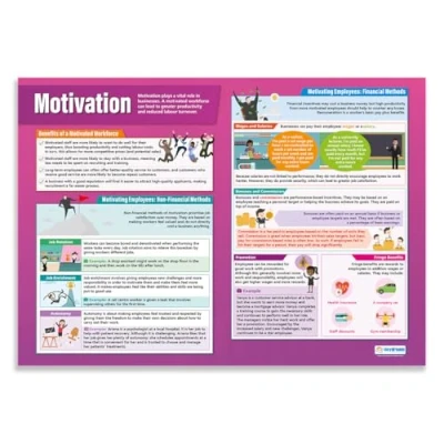 EDUCATIONAL CHART DESIGNED BY TEACHERS: Our Motivation poster helps students to learn, engage and remember more information than ever before. Covering the basics of the financial and non-financial ways businesses can motivate their employees, this unique school poster can play a vital role in improving both students' understanding and classroom décor. SUPPLEMENT KNOWLEDGE: Our educational charts are colourful, beautifully illustrated and contain a huge amount of valuable information. The business posters use attractive images and informative text, designed to help students’ gain a greater understanding of key topics. This educational business poster is a great resource for Schools, Classrooms, Business Teachers, Tutors, Students, Home School Parents and Home School Children. MAKE LEARNING FUN: Engaging, clear and colourful images create a fun learning environment in which students can excel. Our amazing wall charts can help to increase students’ interest towards Business Studies, whilst recapping key information. LARGE SIZE – IDEAL FOR READING FROM A DISTANCE: Our Business Studies charts are a large size, measuring 850mm x 594mm (A1). This ensures that the wall charts are easily readable from a distance. Our educational posters are a fantastic way of brightening and decorating any classroom and can easily complement every type of learning environment. THE UK’s NO. 1 PROVIDER: Brought to you by Daydream Education, the UK's leading provider of educational posters for schools, with a range that spans over 25 subjects across key stages 1 – 5. By combining a bold, visual approach with simple, concise information, we have provided over five million resources to more than 50,000 classrooms worldwide.