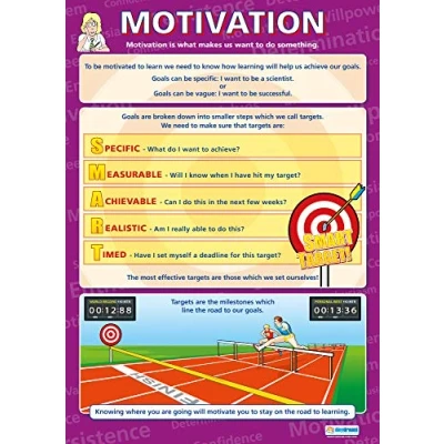 EDUCATIONAL CHART DESIGNED BY TEACHERS: Our Motivation poster helps students to learn, engage and remember more information than ever before. Covering the basics of motivation as a topic, this unique school poster can play a vital role in improving both students' understanding and classroom décor. SUPPLEMENT KNOWLEDGE: Our educational school posters are colourful, beautifully illustrated and contain a huge amount of valuable information. This Motivation poster is specifically designed to help students gain a greater understanding of motivation as a topic. The wall chart is a great resource for Schools, Classrooms, PSHE Teachers, Students, Tutors, Home School Parents and Home School Kids. MAKE LEARNING FUN: Engaging, clear and colourful designs and images create a fun learning environment in which students can excel. Our amazing wall posters can help to increase students’ interest towards Motivation, while recapping any key information they've been taught. LARGE SIZE – IDEAL FOR READING FROM A DISTANCE: Our school wall charts are a generous size, measuring 850mm x 594mm (A1). This ensures all posters are easily readable from a distance. Our educational posters are a fantastic way of brightening and decorating any classroom and can easily complement every type of learning environment. THE UK’s NO. 1 PROVIDER: Brought to you by Daydream Education, the UK's leading provider of educational posters for schools, with a range that spans over 25 subjects across key stages 1 – 5. By combining a bold, visual approach with simple, concise information, we have provided over five million resources to more than 50,000 classrooms worldwide.