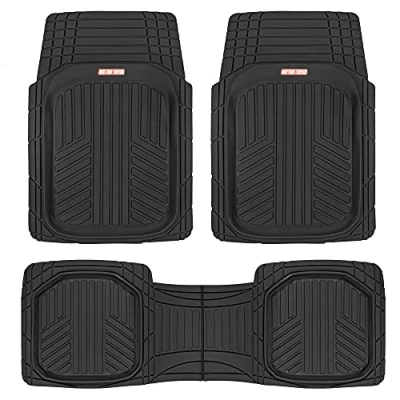 Motor Trend FlexToughXL Floor Mats for Cars Full Set, All Weather Rubber Automotive Mats, Waterproof Heavy Duty Car Flexible Liners Truck Van SUV, (Black)