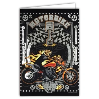 Motorbike Club Legend Bike on the Road Tiger Mechanical Flame Card Shiny Silver Open White 23 x 17 cm With Envelope 12 17.5 Birthday Leaving Retirement Party