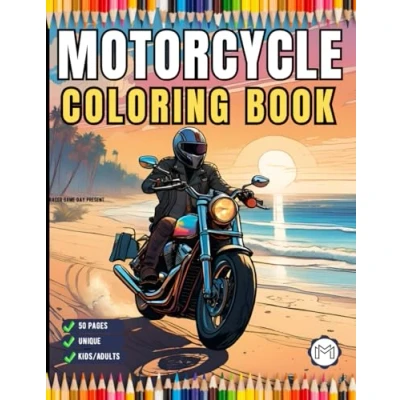 Motorcycle Coloring Book Gift for Adults Men Women Kids 50 Pages Motorbike Rider Sheets Boys Girls Teens Moto Biker Activity ... Relaxation Chopper Present