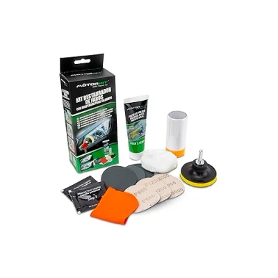 WHAT'S INCLUDED: Sanding disc P800 (2), Sanding disc P1200 (2), Sanding disc P2000 (2), Wool polishing disc (1), Cloth (1), Polishing paste 85 g (1), Protective liquid 3 ml (2), Adhesive tape (1), Pad holder with M10 thread (1), Adapter (1), Instruction manual (1) Everything you need to restore 2 headlights. The kit includes everything you need to restore the most opaque lenses and includes a special drill adapter. Get excellent results on most plastic lenses such as tail lights, trailers, boat windows, helmet visors, motorbike windshields, snowmobiles and more.