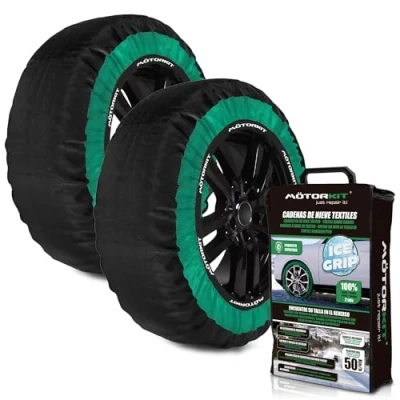 The Motorkit Ice Grip Size S Textile Snow Chains Set is the ideal solution for safe driving on snow- or ice-covered roads. Designed to provide excellent grip and stability, these textile chains improve vehicle traction in harsh winter conditions. Their 100% textile composition ensures efficient contact with the surface, reducing the risk of slipping and increasing safety on every journey. Thanks to their innovative design and patented technology, these snow chains do not damage the tyres or cause vibrations, ensuring a quiet and comfortable ride. Their structure allows them to adapt perfectly to the wheel, guaranteeing a firm and stable fit at all times. They are an effective and practical alternative to traditional metal chains, without compromising performance in extreme conditions. Installing the Motorkit Ice Grip chains is simple and quick, requiring no tools or advanced knowledge. They are perfect for emergency situations, as their fastening system allows them to be fitted in just a few minutes. Moreover, their EN 16662-1 certification guarantees their quality and compliance with European safety standards, ensuring effectiveness and reliability on the road. For added convenience, this set includes a pair of gloves, making installation easier and protecting your hands from cold and moisture. With a maximum recommended speed of 40 km/h, these textile snow chains allow safer driving on slippery surfaces, providing stability and steering control in difficult weather conditions. The Motorkit Ice Grip Textile Snow Chains are reusable and easy to clean after use, ensuring long-lasting durability. They are an essential choice for those seeking safer winter driving without sacrificing comfort or damaging their tyres. Ideal to keep in the vehicle during the snow season, always ready for any unexpected situation on the road.