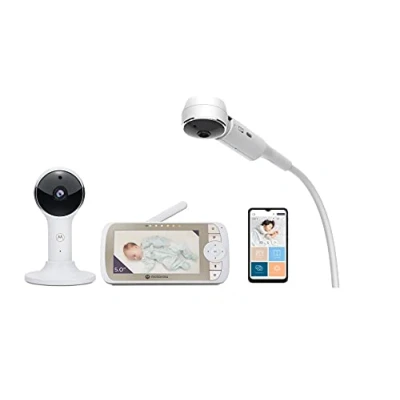 Motorola Nursery VM65X Connect Halo Video Baby Monitor with Crib Holder 5 inch Parent Unit and WiFi App Flexible Magnetic Camera Mount, White