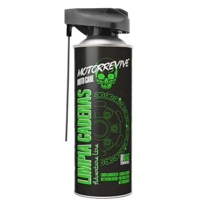 Motorrevive Adventure Line Chain Cleaner has been created to tackle off-road challenges with efficiency, safety, and high performance. Its turbo-active formula removes dirt, grease, and mud in seconds, even after the most demanding rides. Specifically designed for adventure, enduro, and trail motorcycles, it delivers a thorough cleaning without compromising component integrity, allowing the chain to run smoothly and precisely after every use. Thanks to its direct spray application, it coats every link evenly and penetrates into the hardest-to-reach areas, ensuring a complete cleaning without disassembly. It eliminates even the most stubborn impurities and prepares the transmission system to continue working efficiently, even in environments with humidity, dust, and constant dirt. The ideal ally for riders who demand consistent performance beyond the asphalt. This cleaner has been developed under strict safety standards, prioritizing the care of your bike. It contains no corrosive agents, does not damage seals, and leaves no residues that could affect the mechanical system. Regular use protects the chain against premature wear and prevents accumulated debris from altering the bike’s performance. With every application, you ensure safer riding and a machine always ready for the next challenge. In addition to deep cleaning, this product prepares the chain for subsequent lubrication, maximizing the effectiveness of the complete treatment. When combined with Motorrevive Adventure Line Chain Lubricant, it achieves the perfect synergy between cleaning and protection, resulting in greater durability and better mechanical response under extreme conditions. A complete and technical maintenance solution that adapts to any terrain. Recommended for regular use every 1,000 km, Adventure Line Chain Cleaner easily integrates into your maintenance routine. Shake the can, spray generously over the chain, and if necessary, use a soft-bristle brush for more precise cleaning. It is an essential tool for those who love to explore without limits and want to keep their motorcycle in optimal condition after every adventure.