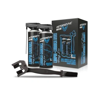 Remove the toughest dirt and protect the performance of your sports bike with the Motorrevive Racing Line Pack, designed to provide professional maintenance at home. The chain cleaner works with turbo power, dissolving grease, dust, and built-up residues without damaging transmission components. Its fast and efficient formula delivers deep cleaning from the very first use, helping extend chain life and ensuring smooth operation even under extreme demands. After cleaning, the Racing Line lubricant becomes the perfect ally to maintain chain smoothness and resistance. Specifically formulated for racing motorcycles, it provides long-lasting protection and is compatible with O-Ring, X-Ring, and Z-Ring chains. Its ability to withstand high temperatures, friction, and adverse weather conditions ensures the chain operates optimally in any environment, improving power transfer and reducing overall wear. The special brush included in this pack adds precision to the cleaning process, reaching areas that a cloth or spray alone cannot. With an ergonomic design and durable bristles, it provides effective mechanical action that complements the chemistry of the cleaner. Combined with the powerful cleaning formula, it delivers a complete clean—ideal for the details that make the difference in high-performance motorcycles. This complete pack represents an all-in-one solution for motorcycle chain care, designed for those who demand performance without neglecting maintenance. The synergy of deep cleaning, advanced lubrication, and specialized tools guarantees visible results from the very first application. With each use, your bike is prepared to deliver superior performance on track or road, without interruptions or unnecessary risks. Designed for speed and precision enthusiasts, the Motorrevive Racing Line Pack transforms maintenance into a simple, effective, and professional process. The chain stays clean, protected, and ready for action, ensuring a smoother, stronger, and safer riding experience in every curve and acceleration. Perfect for riders who live their motorcycle as an extension of their lifestyle.