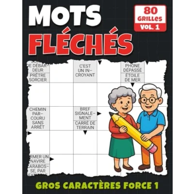 Mots Fléchés gros caractères Force 1: 80 mini grilles lisibles avec solutions Cahier de réflexion en
