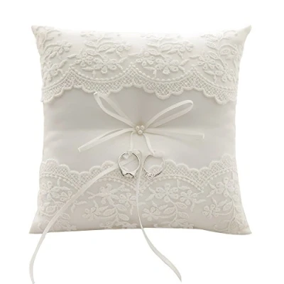 MOTTDAM Lace Wedding Ring Pillow Pearl Cushion Bearer 8.26 Inch
