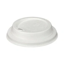 Moulded fibre coffee cup lid. Commercially compostable. Suitable for use with Edenware PLA coffee cups. Size: 12-16oz. Colour: White. Pack of 1000.