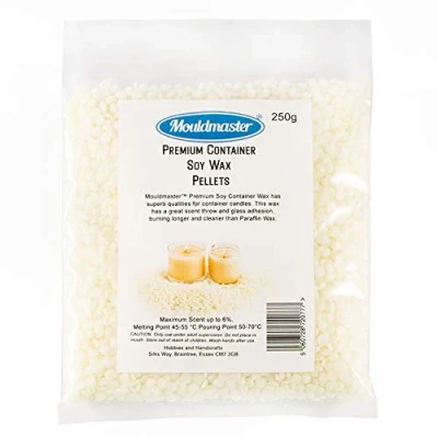 Mouldmaster Premium Container Soy Wax has been devloped speifcally for Container Candles Soy waxes last longer than parffin waxes and burn much cleaner Mouldmaster Brand Waxes are Traded Marked and are NOT sold by thrid party sellers Trade Marked and Fully Tested by our in House Team Melting Point 45-55 °C Pouring Point 50-70°C