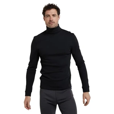 Mountain Warehouse Meribel Mens Thermal Baselayer Top Combed Cotton Sweater, Roll Neck Jumper, Breathable, Quick Drying & Fitted Sleeves for Everyday Use Black M