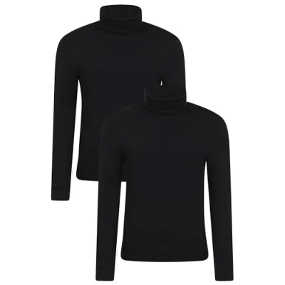 Mountain Warehouse Meribel Mens Thermal Baselayer Top Combed Cotton Sweater, Roll Neck Jumper, Breathable, Quick Drying & Fitted Sleeves for Everyday Use Black S