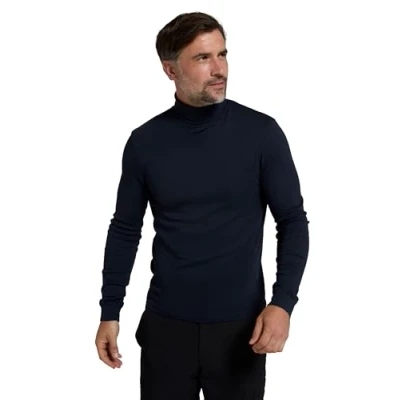 Mountain Warehouse Meribel Mens Thermal Baselayer Top Combed Cotton Sweater, Roll Neck Jumper, Breathable, Quick Drying & Fitted Sleeves for Everyday Use Navy 4XL
