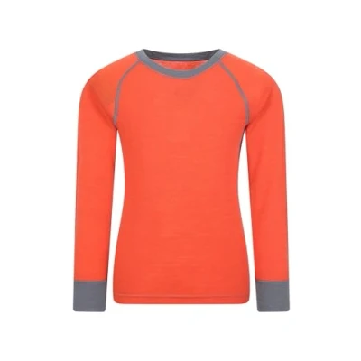 Mountain Warehouse Merino Kids Round Neck Thermal Baselayer Top Long Sleeve, Lightweight, Antibacterial, Breathable & Quick Dry T Shirt Travelling Outdoors Orange Size 5 6 Years