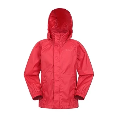 Mountain Warehouse Pakka Kids Waterproof Jacket Wind Resistant, Lightweight,Breathable Rain Coat For Girls & Boys, Packaway Bag Rain, Autumn, Winter Red Teen Size 13 Years