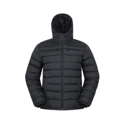 Mountain Warehouse Season Mens Padded Jacket Water Resistant Jacket, Lightweight, Warm, Lab Tested to 30C, Microfibre Filler for Travelling, Walking Black XL
