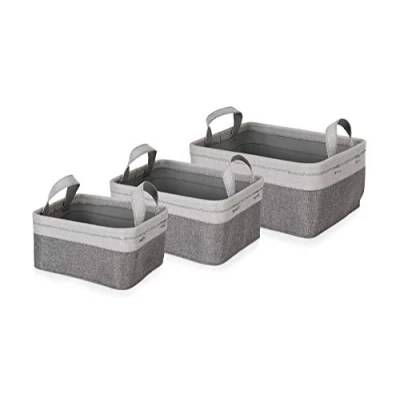 Innovative and practical programme named after the Grey melange canvas of these baskets and boxes The series consists of three different models in several sizes and can therefore be used for a wide variety of purposes The timeless design and the discreet colouring - Grey - Set accents in every home and bathroom Practical detail: the laundry basket is foldable, The sets of 3 can be stacked into each other - So that they can be easily transported and stowed away