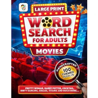 Movies Word Search Book For Adults, Large Print: 2500 Fun Words, 100 Puzzles, Fact or Fiction Questions with Solutions.